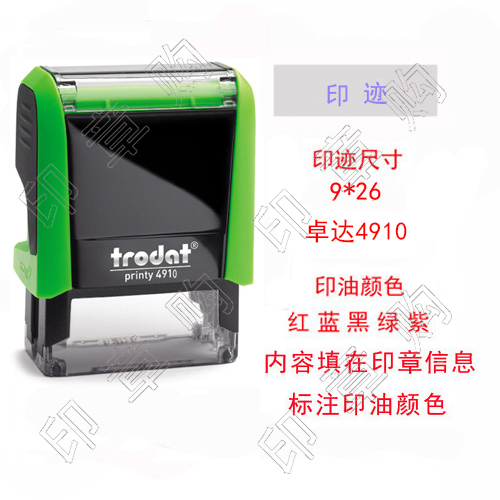 品牌:卓达规格:26 x 9mm优势:轻松盖印,印迹清晰,干净整洁,100,000次以上盖印寿命1. 使用方便——连续盖印,1次完成2. 印迹清晰——高精度,15年不退色3. 内置印台——方便注油;可更换印台4. 全景视窗——提高效率5. 精确盖印定位对准设计,防滑设计