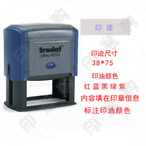 品牌:卓达规格:75 x 38mm优势:轻松盖印,印迹清晰,干净整洁,100,000次以上盖印寿命1. 使用方便——连续盖印,1次完成2. 印迹清晰——高精度,15年不退色3. 内置印台——方便注油;可更换印台4. 全景视窗——提高效率5. 精确盖印定位对准设计,防滑设计